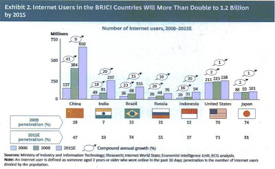 Baru saja saya melihat InfoGraphic yang di posting oleh Eduardo Saverin , InfoGraphic tersebut menjelaskan mengenai pertumbuhan penggunan internet di beberapa negara. Bukan data penggunanya yang bikin saya agak terkejut, lebih pada penggunaan singkatan BRICI. Huruf “I” treakhir pada singkatan BRICI artinya Indonesia! Kalau kita sering membaca berita perkembangan dunia, terutama ekomomi atau potensi pasar, sebenarnya BRIC (Brazil Rusia India China) lebih jauh lebih akrab dan sering “didengungkan“, dibandingkan dengan BRIC(I). Dengan menggunakan/menyebut BRICI, artinya potensi Indonesia disetarakan dengan keempat negara lainnya l. Paling tidak, Indonesia diperhitungakan oleh Co-Founder Facebook 😀