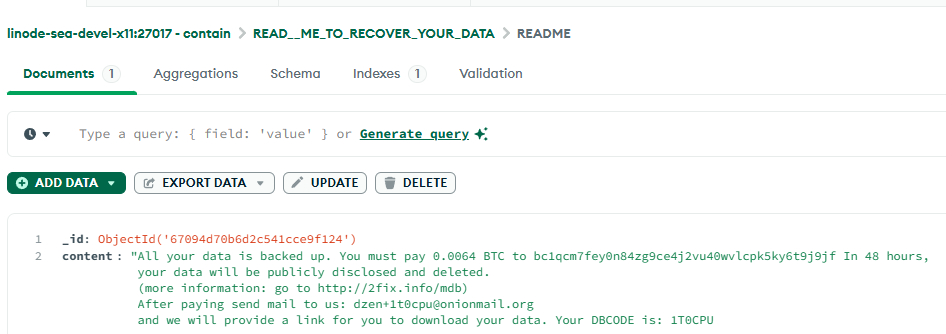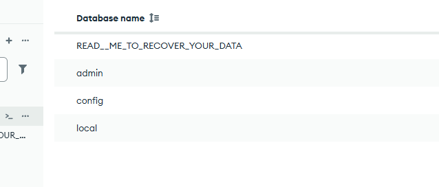 A few days later, I logged in and found a new database sitting inside MongoDB, created by someone else.
